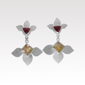 Uniquely handmade and one-of-a-kind fine and sterling silver earrings with garnets and quartz. Limited quantities are available, ensuring each item's exclusivity.